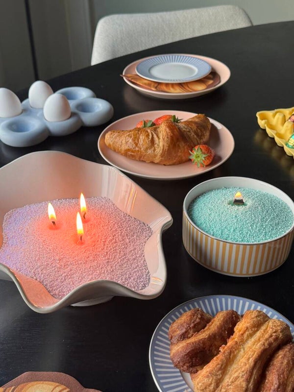 Endlose kreative Möglichkeiten: Fügen Sie ätherische Öle für einen dezenten Duft hinzu oder gestalten Sie Ihr persönliches Design mit verschiedenen Farben und Mustern des Kerzensandes.